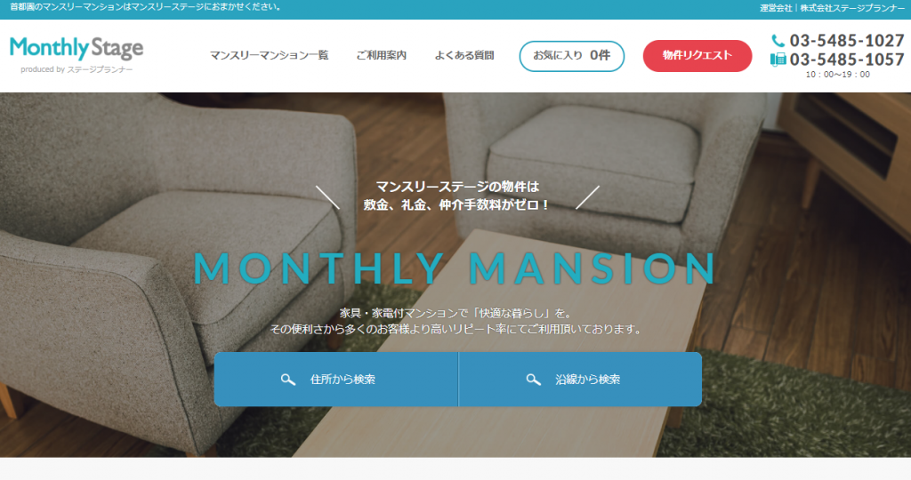 ステージプランナーは公式サイト以外にも賃貸物件用とマンスリーマンション用のサイトを運営しています。